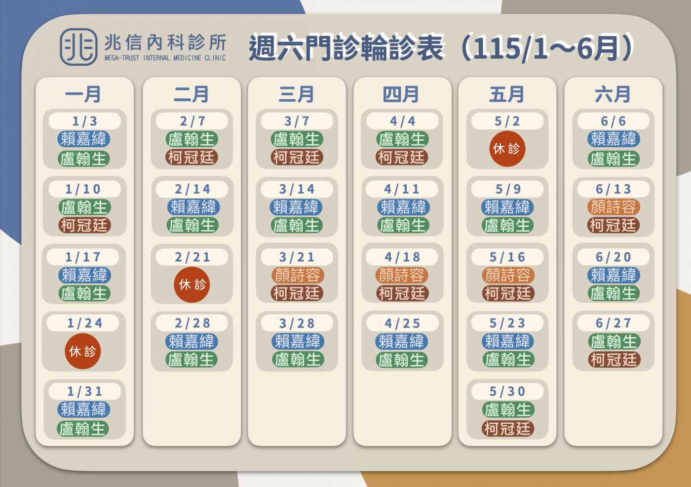 115年上半年週六早診醫師輪診表